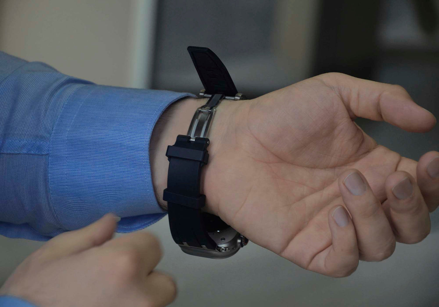 Engineered to stand out in the world of smartwatch accessories, this Apple Watch rubber band features a sleek titanium butterfly clasp for quick, secure, and hassle-free fastening within seconds.