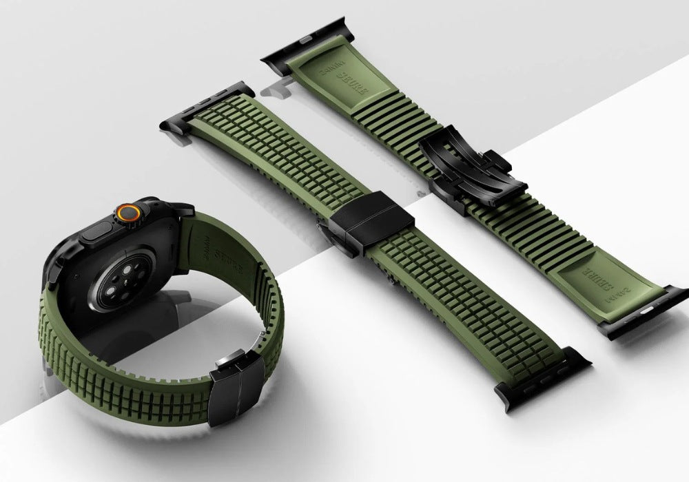 Made from premium FKM fluoroelastomer, this band delivers long-lasting comfort with resistance to heat, sweat, and chemicals.
